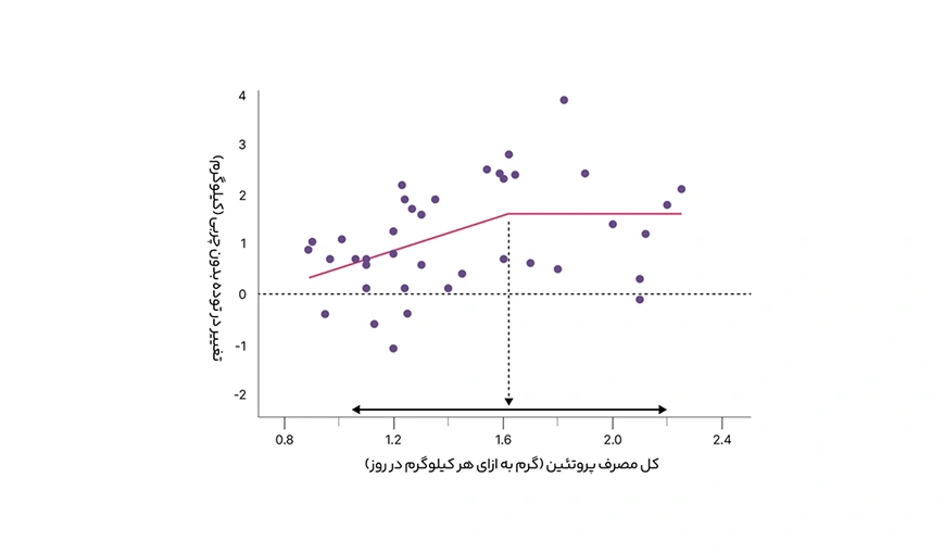 اگرچه درست است که مصرف پروتئین بیشتر باعث افزایش عضله در اثر تمرینات مقاومتی میشود، اما بیشتر از حد لزوماً بهتر نیست. برخی شواهد نشان میدهند که مقدار آستانه حدود ۱.۶ گرم پروتئین به ازای هر کیلوگرم وزن بدن در روز است؛ یعنی افزایش مصرف پروتئین فراتر از این مقدار در بیشتر افراد باعث افزایش بیشتر عضله نمیشود (جدول زیر را ببینید.