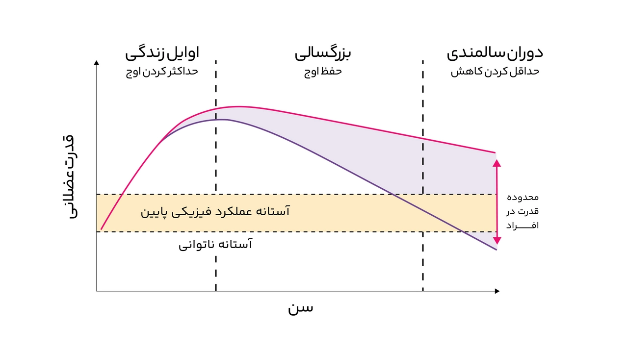 شایعترین علت ضعف مرتبط با سن و سارکوپنی، از دست دادن عضلات است. بزرگسالان مسن معمولاً سالانه به میزان ۰.۵٪–۱٪ از توده عضلانی خود را از دست میدهند، قدرت عضلانی به میزان ۱٪–۳٪ و قدرت به میزان ۳٪–۴٪ از سال ۵۰ به بعد. از دست دادن قدرت عضلانی از حدود ۷۵ سالگی سرعت میگیرد و ممکن است هر سال ۳٪–۴٪ کاهش یابد. به همین دلیل است که ساخت عضله در طول دوران جوانی و میانسالی بسیار مهم است و حفظ عضلات و قدرت عضلانی در برابر روند پیری اولویت دارد.
